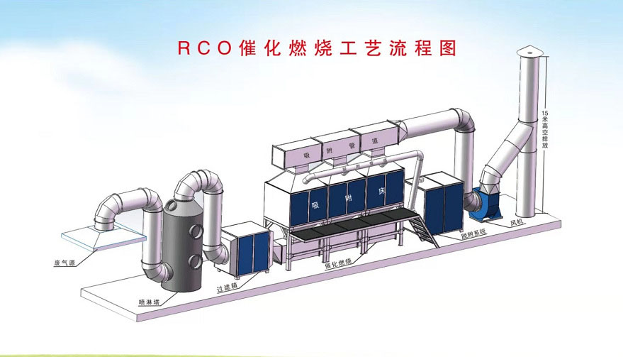 催化燃燒設備工作原理,在工業生產過程中,排放的有機尾氣通過引風機進入設備的旋轉閥,通過選轉閥將進口氣體和出口氣體完全分開。氣體首先通過陶瓷材料填充層(底層)預熱后發生熱量的儲備和熱交換,其溫度幾乎達到催化層(中層)進行催化氧化所設定的溫度,這時其中部分污染物氧化分解;廢氣繼續通過加熱區(上層,可采用電加熱方式或天然氣加熱方式)升溫,并維持在設定溫度;其再進入催化層完成催化氧化反應,即反應生成CO2和H2O,并釋放大量的熱量,以達到預期的處理效果。