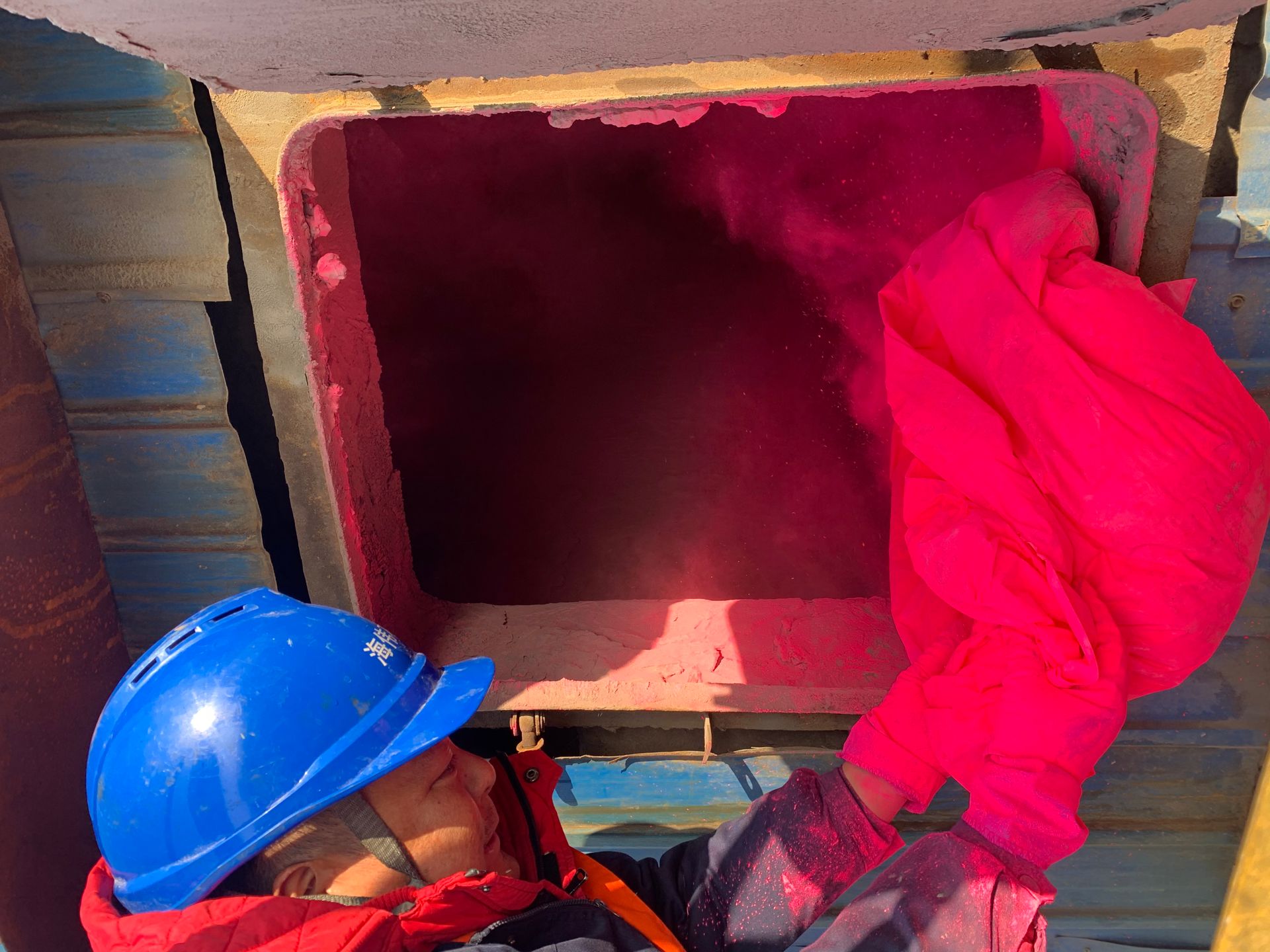 新鄉(xiāng)市利菲爾特濾器股份有限公司的售后技術(shù)人員抵達現(xiàn)場后,先對現(xiàn)場煙氣處理設(shè)備進行了勘查,確認檢漏熒光粉的投料點,并與業(yè)主溝通確認熒光粉檢漏操作的具體時間。